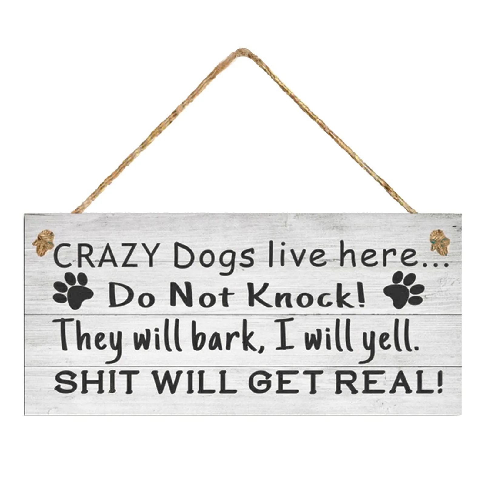 Деревянная дверная вывеска в стиле ретро, подвесная сумасшедшая собака, не ударяется, практичная подвесная буква, печать, украшение для дома, статуя дверной вывески