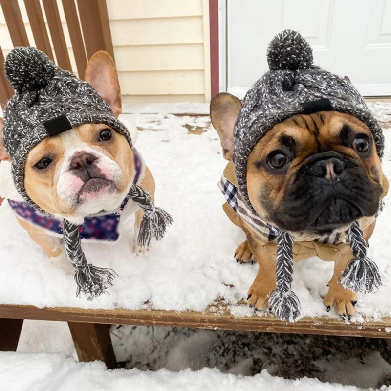 Зимняя теплая ветрозащитная трикотажная шапка в виде кота для французского бульдога