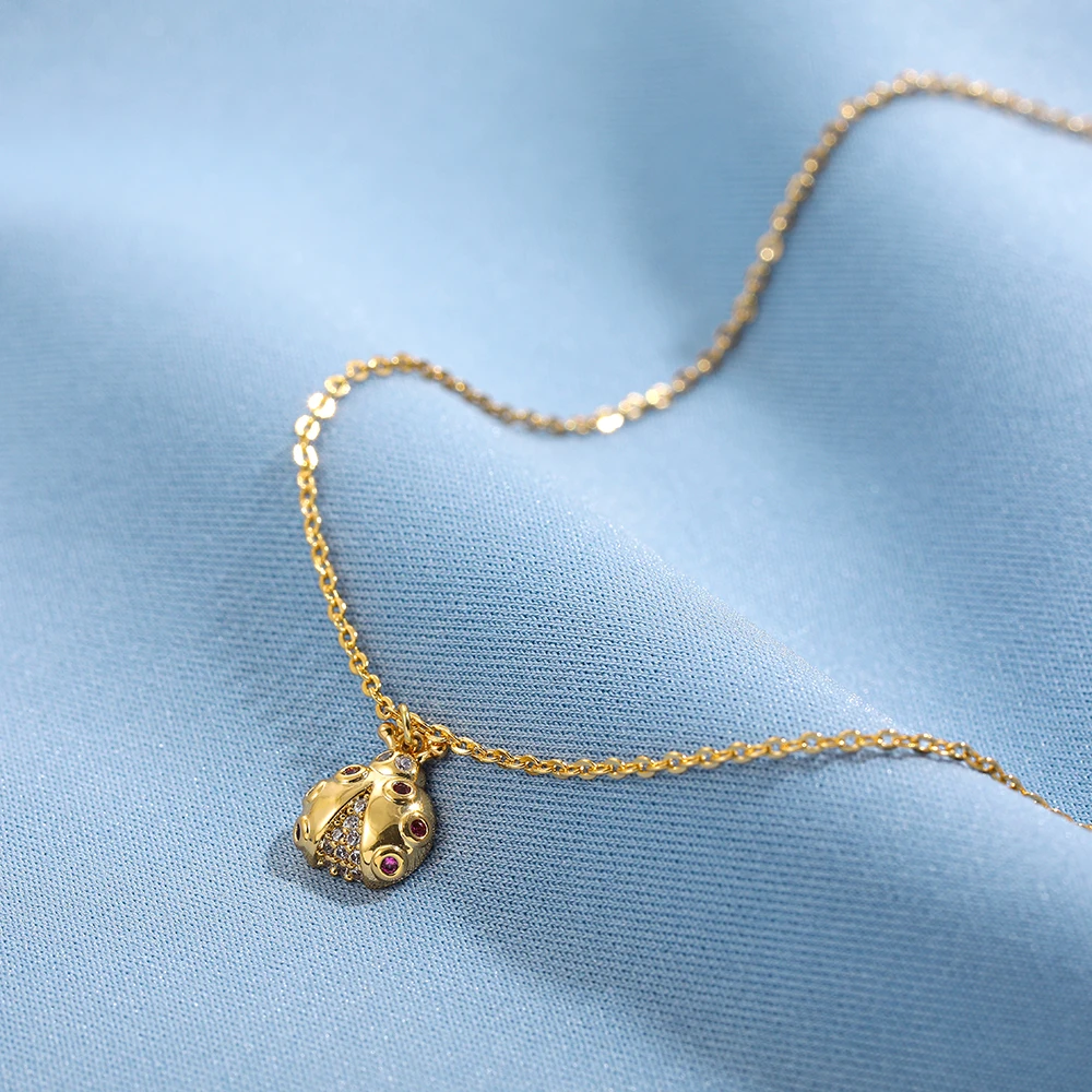 Ожерелье с мини-насекомыми божьей коровкой для женщин, ожерелье с цирконом, маленькое ожерелье до ключиц, модные ювелирные украшения, женские ожерелья