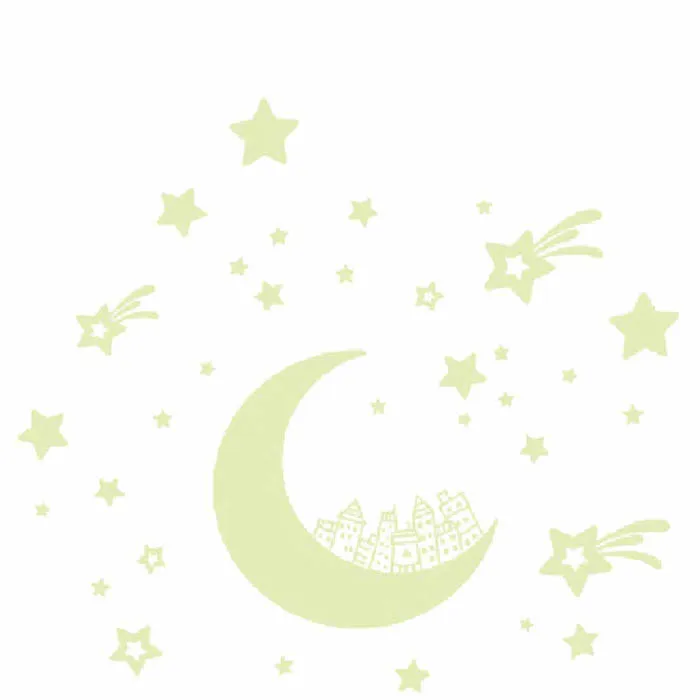 Мультфильм Луна Звезда город Светящиеся в темноте светящиеся флюоресцентные настенные наклейки для декора Описание