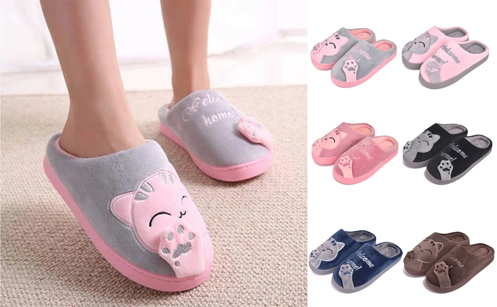 Женские зимние домашние тапочки с мультяшным котом, мужская домашня...