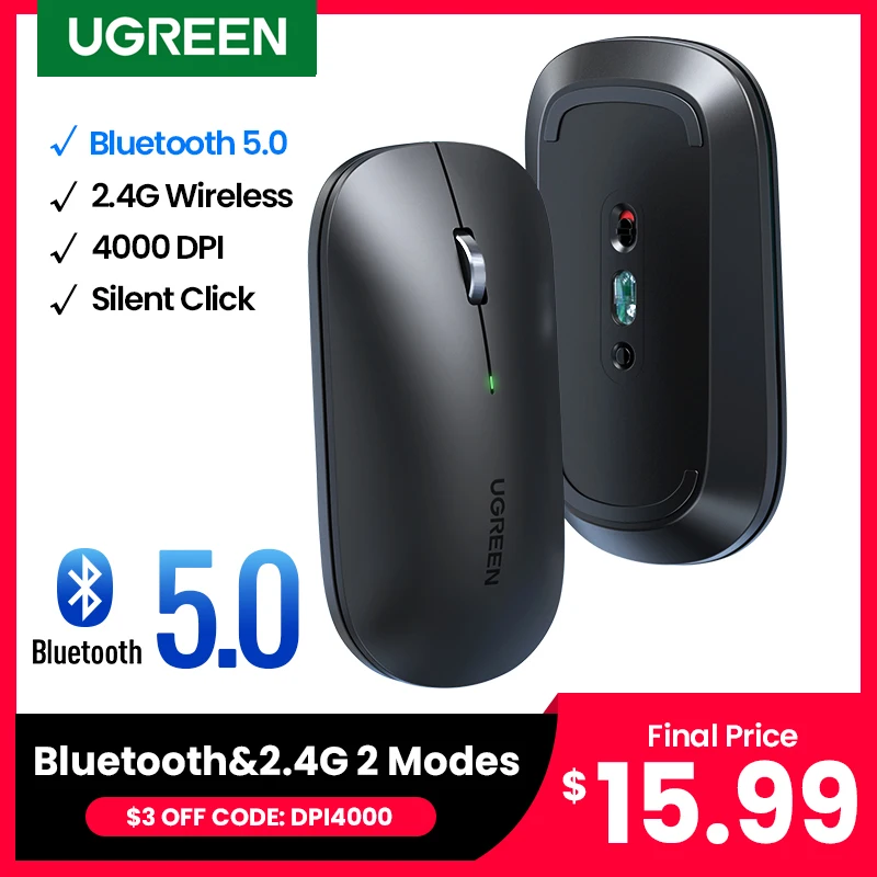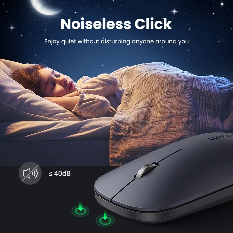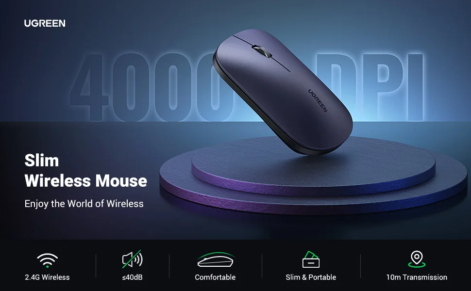 UGREEN мышь беспроводная Тихая мышь 4000 DPI для MacBook планшета компьютера ноутбука ПК мыши 3 см тонкая Тихая беспроводная мышь 2,4G