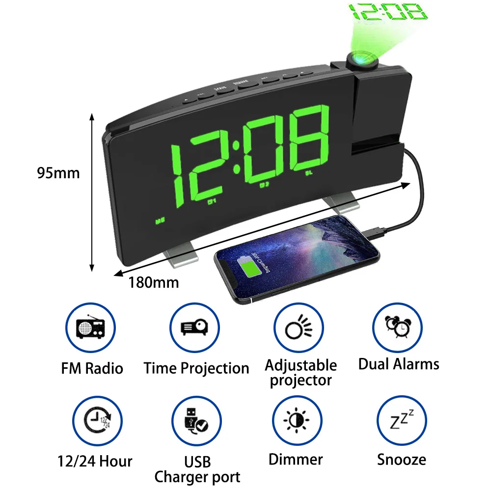 Светодиодный Будильник с цифровой проекцией, настольные электронные часы с проекцией FM-радио, проектор времени