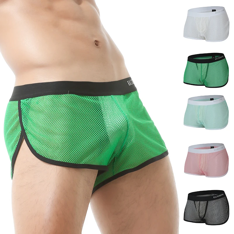 Трусы-боксеры мужские ультратонкие, пикантное нижнее белье, прозрачные трусы-шорты, сетчатые слипы с низкой посадкой, шорты-боксеры