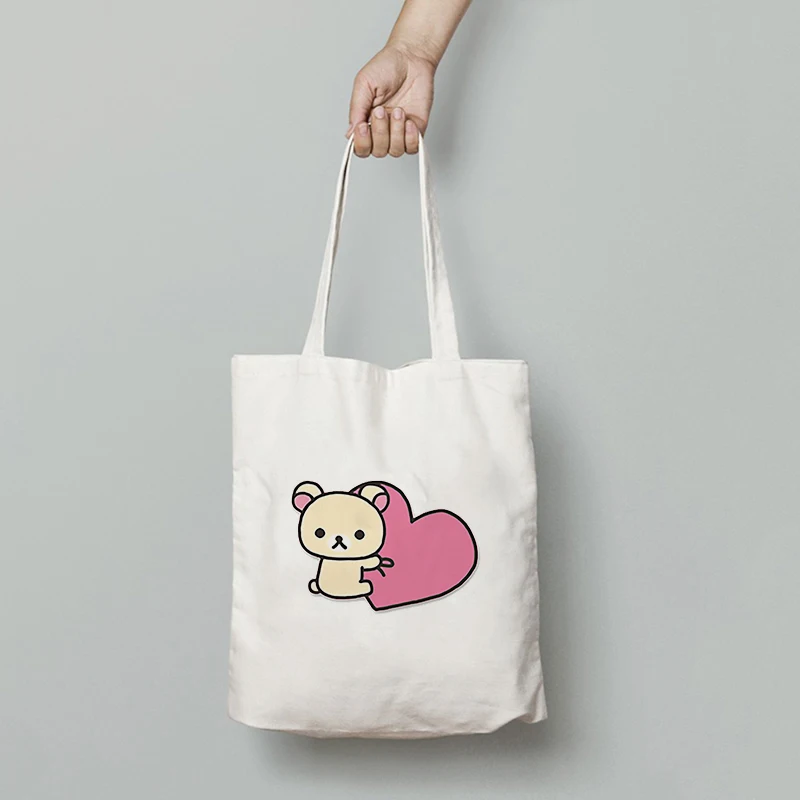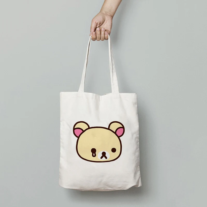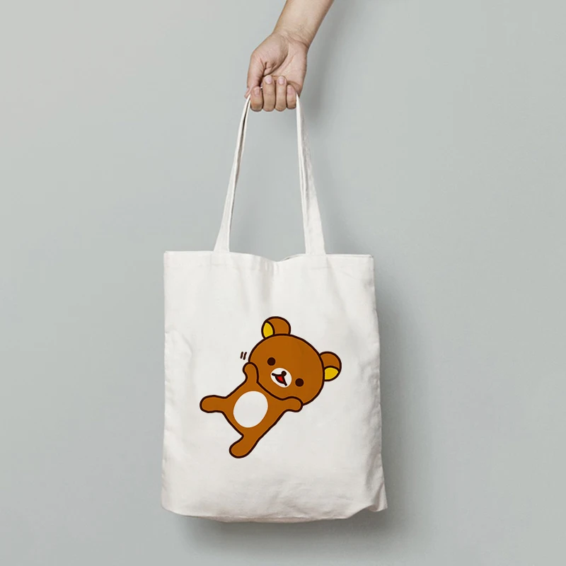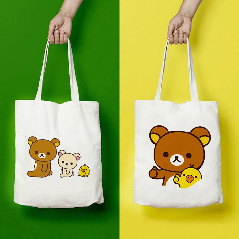 Сумка для покупок Rilakkuma, сумка для продуктов, женская дизайнерская сумка-тоут на заказ, холщовая многоразовая пляжная аниме-сумка