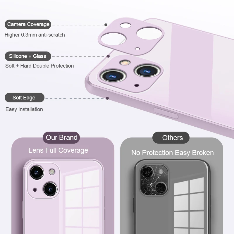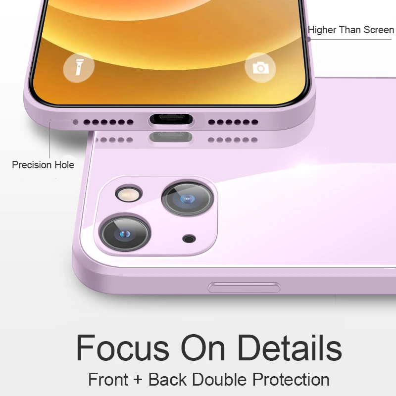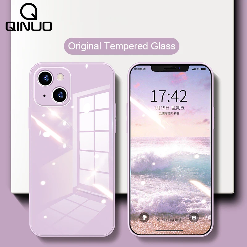 Оригинальный чехол из жидкого силикона с квадратным закаленным стеклом для iPhone 13 Mini 11 12 Pro Max XS XR X 7 8 Plus SE2, жесткий защитный чехол