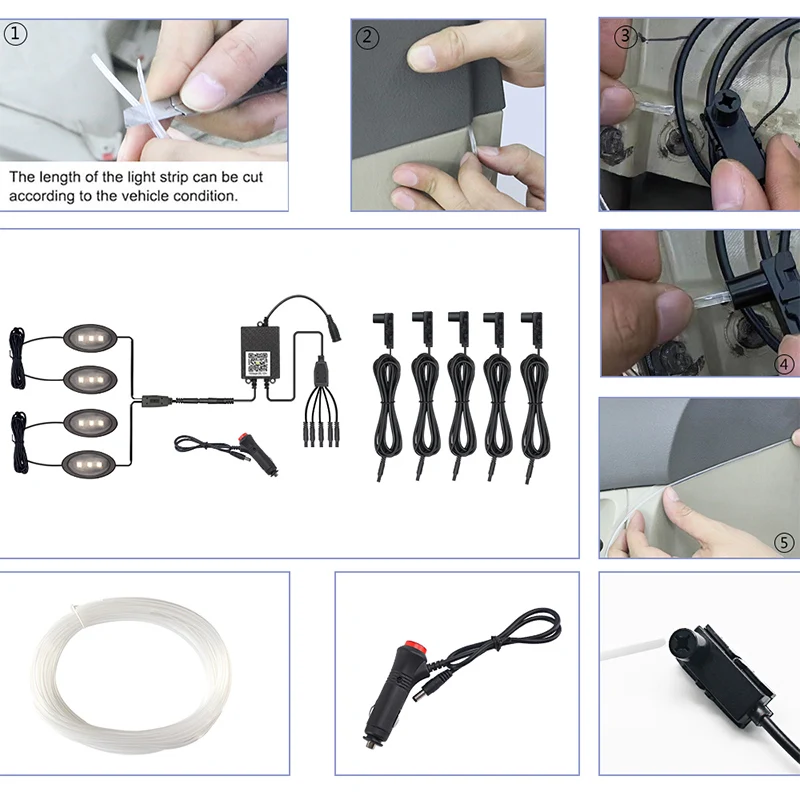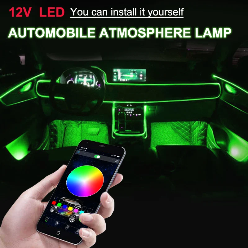 RGB светодиодсветодиодный атмосфера, сверхъяркая автомобильная лампа, комнатная декоративная лампа, оптоволоконные полосы, аксессуары, управление музыкой через приложение