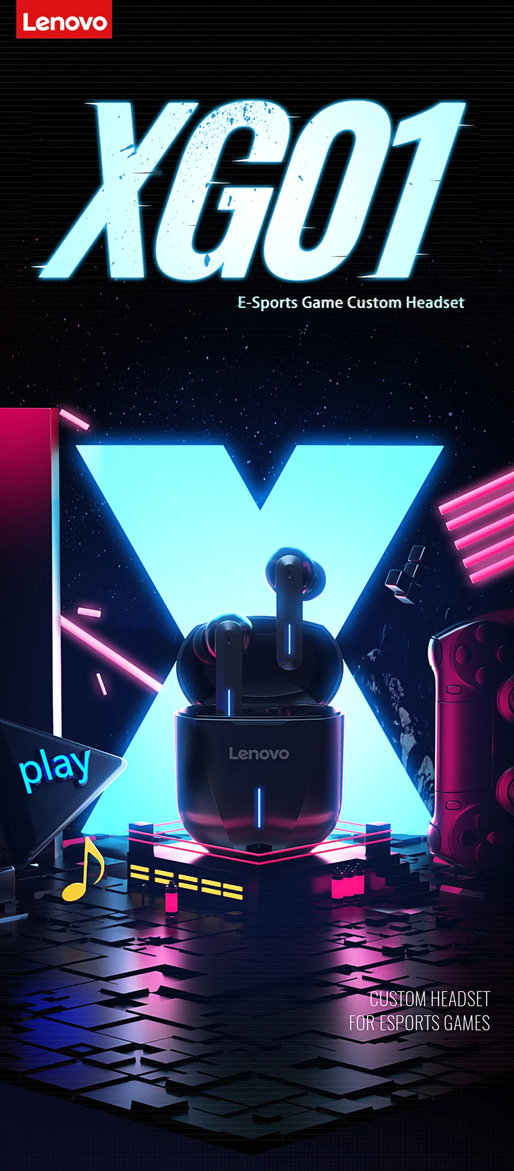 Игровые беспроводные наушники Lenovo XG01, TWS, Bluetooth-совместим...