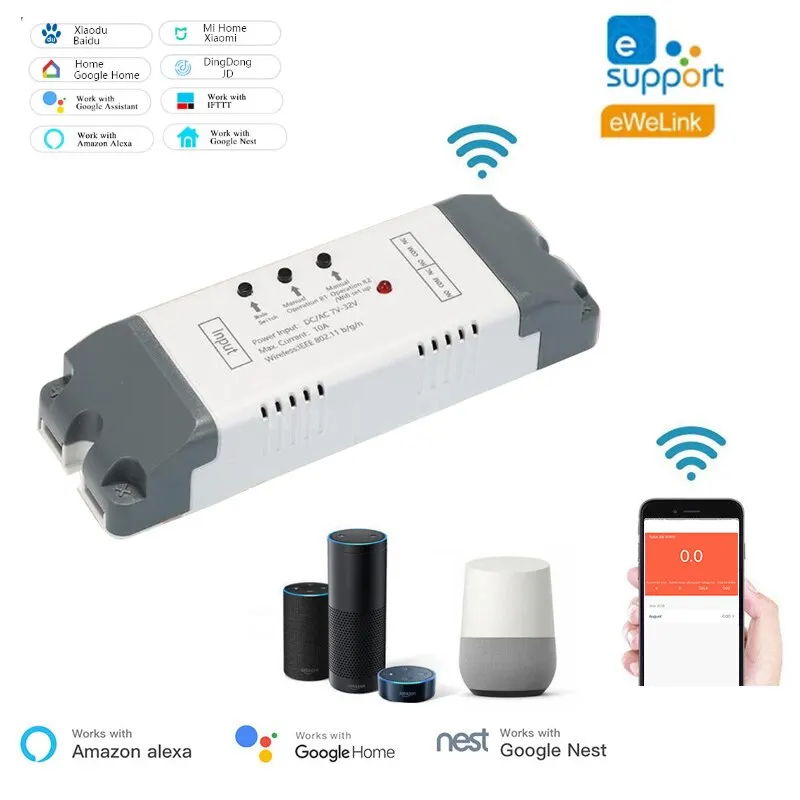 Этот беспроводной коммутатор является экономически эффективным устройством с модулем управления Wi-Fi, без программирования, нужно только загрузить приложение и подключить WIFI, а затем управлять собственным облаком. До тех пор, пока модуль соединяет WIFI, подключенные устройства различных типов и брендов можно управлять через приложение для телефона EWeLink из любой точки мира в любое время. Между тем, установив графики для ваших приборов и поделившись контролем вашего умного дома вместе с семьей, вы можете поддерживать беззаботную жизнь.