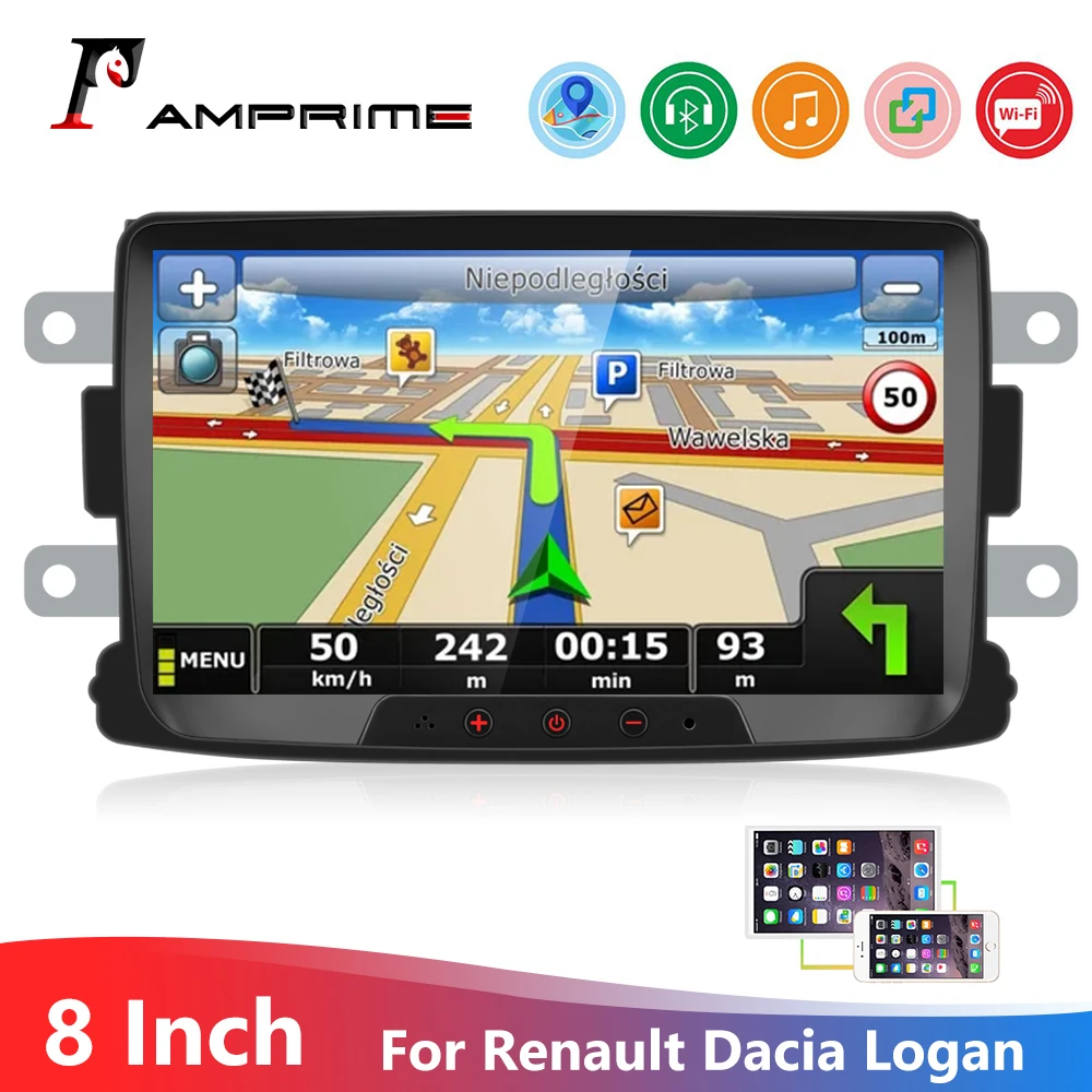 Автомагнитола AMPrime 2 Din, 8 дюймов, Android, GPS, Wi-Fi, Mirrorlink для Renault Sandero, Duste, Logan, Dokker, автомагнитола, автомобильный мультимедийный плеер