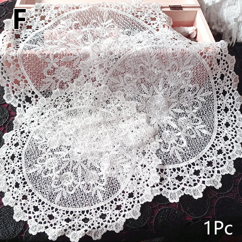 Кружевной круглый белый коврик с вышивкой для стола, Свадебный ковр...