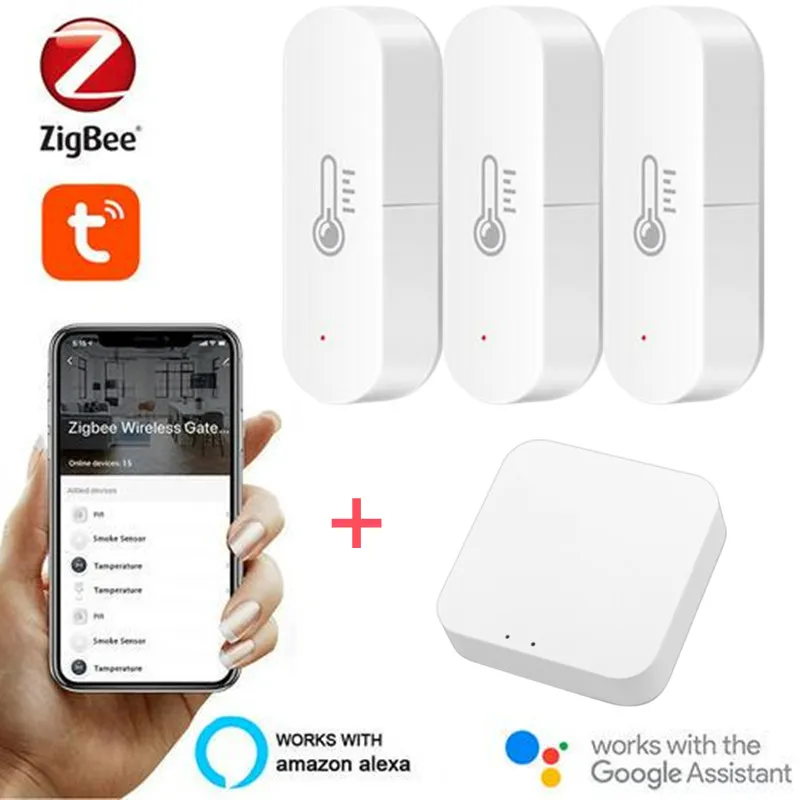 Датчик температуры и влажности Tuya ZigBee для умного дома, сенсорное устройство на батарейках с поддержкой приложения Tuya, для Google Home, Tuya Zigbee Hub Alice