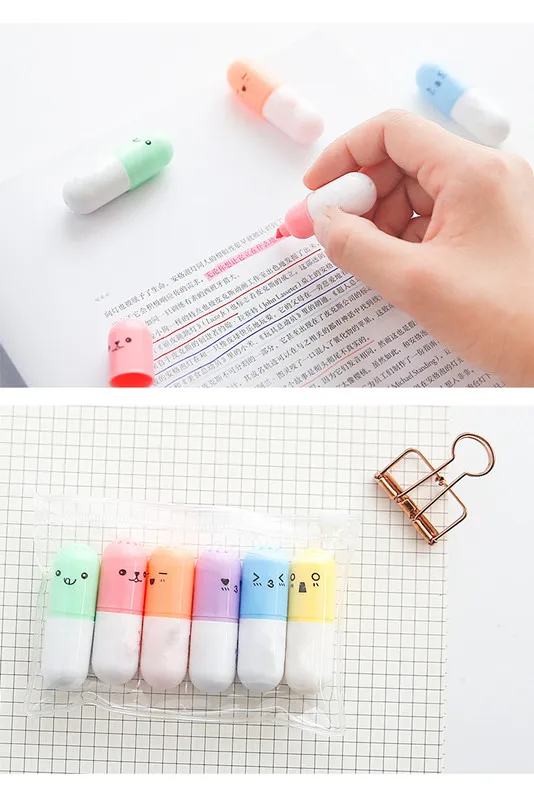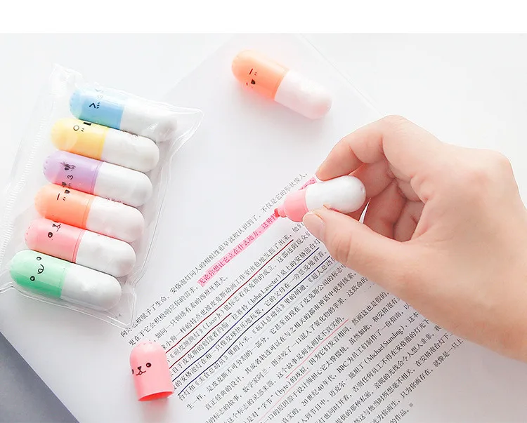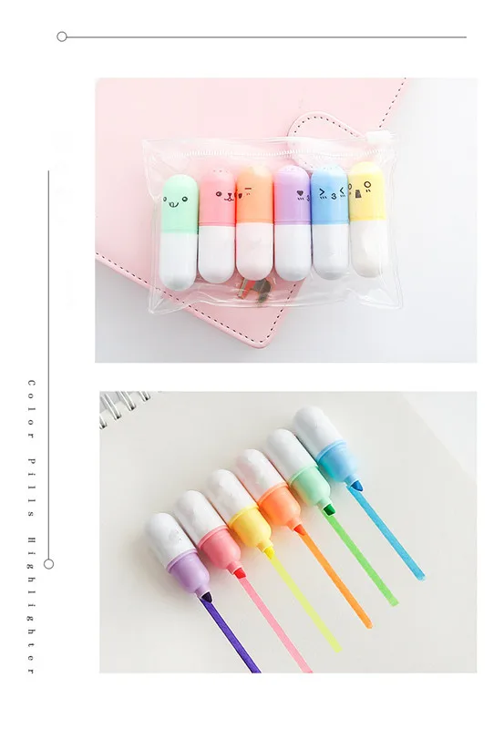 6 шт.лот капсулы хайлайтер Витаминные таблетки маркеры цветные ручк...