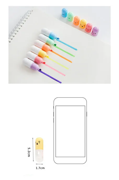 6 шт.Лот Мини капсулы хайлайтер ручка витамин таблетка маркер цветн...