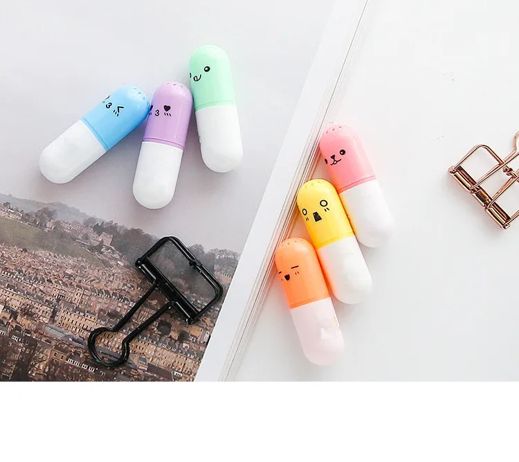 6 шт.лот капсулы хайлайтер витамин таблетка хайлайтер цветные ручки канцелярские принадлежности для офиса школы основа для маркеров Mildliner