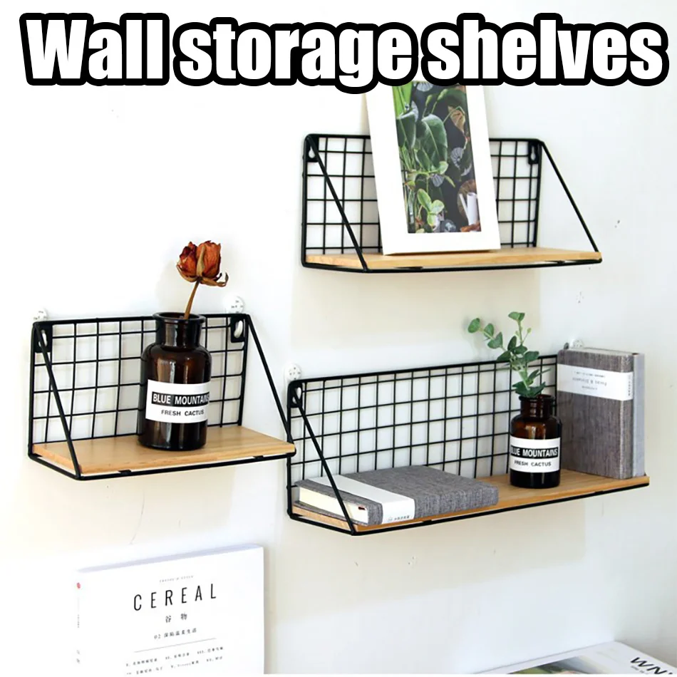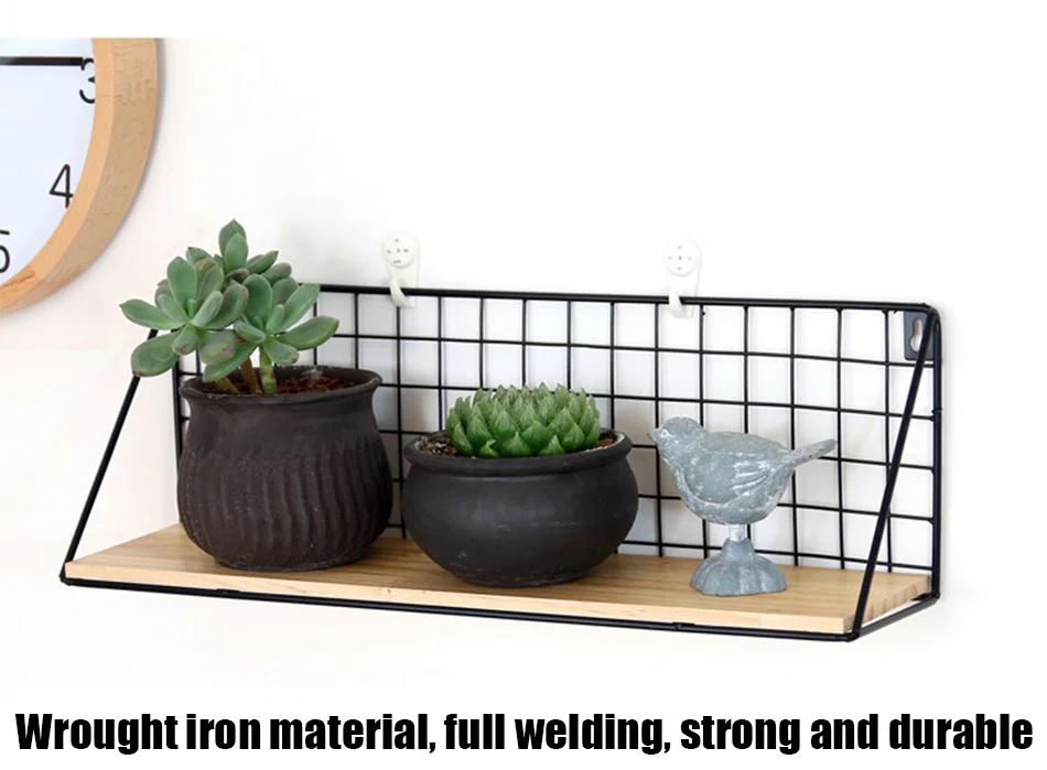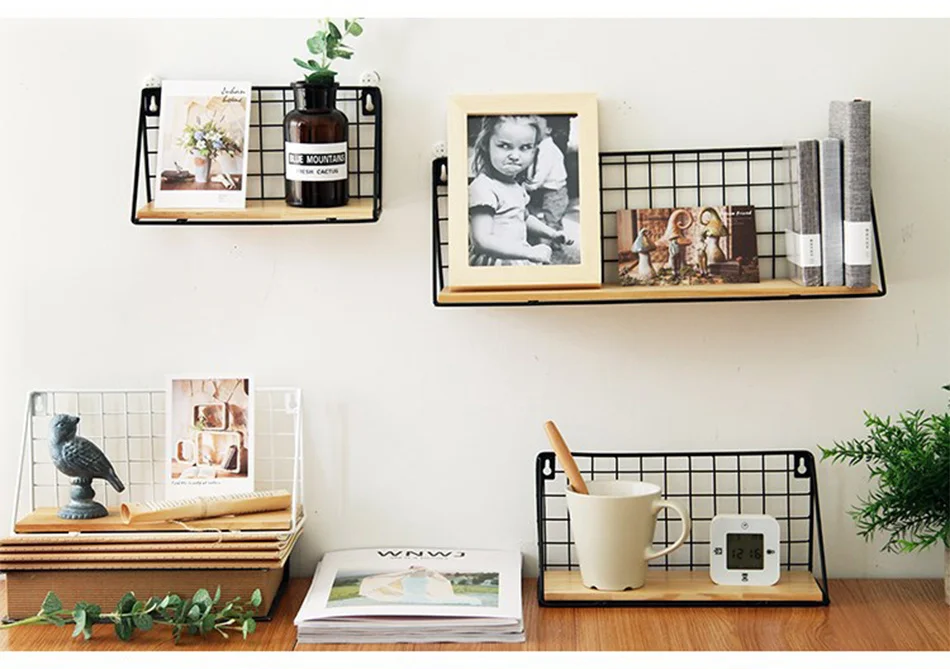 Деревянная и железная настенная полка для домашнего декора, настенн...