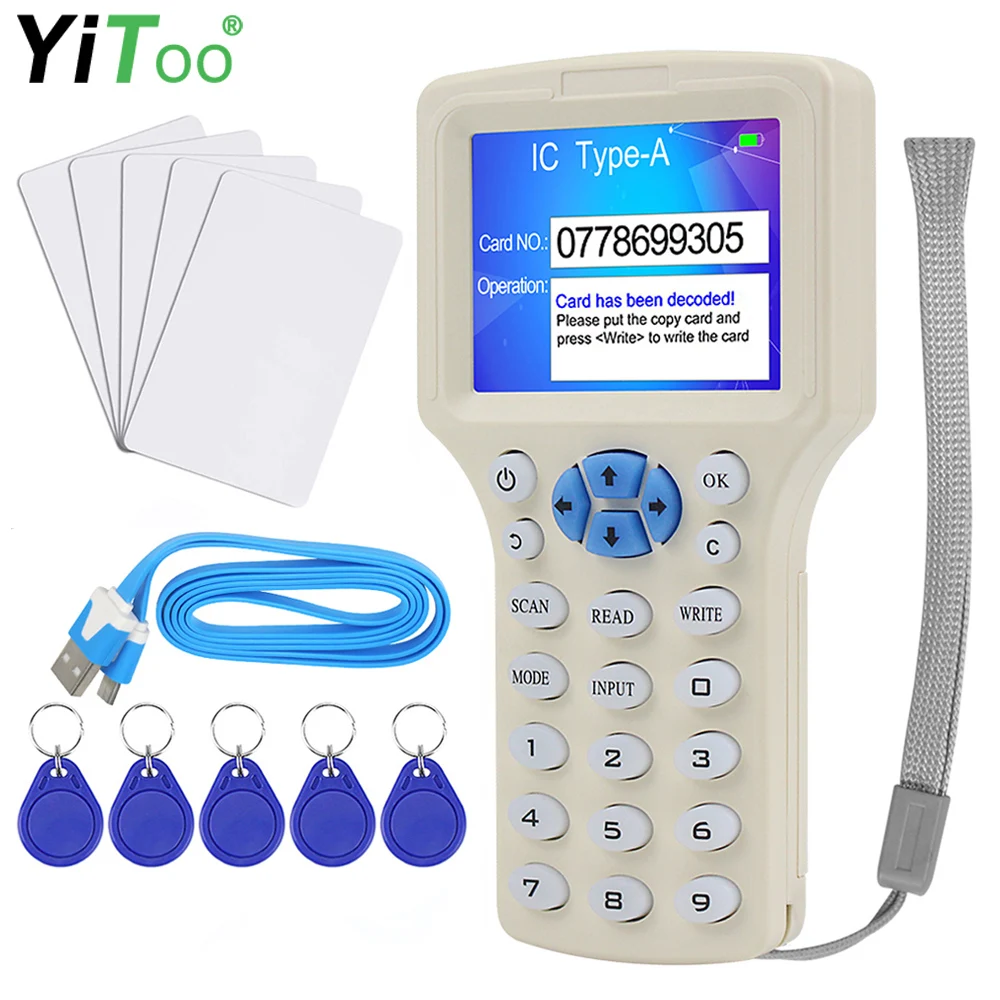 Программатор YiToo IC ID HID UID для смарт-карт, Считыватель RFID, Дубликатор, шифрованный декодер с Перезаписываемыми ключами, USB