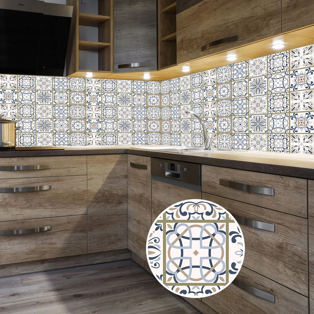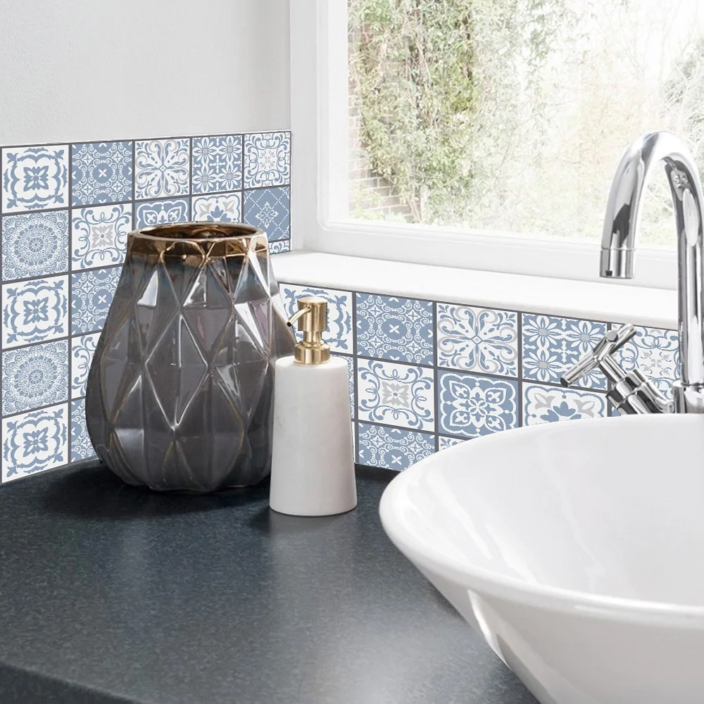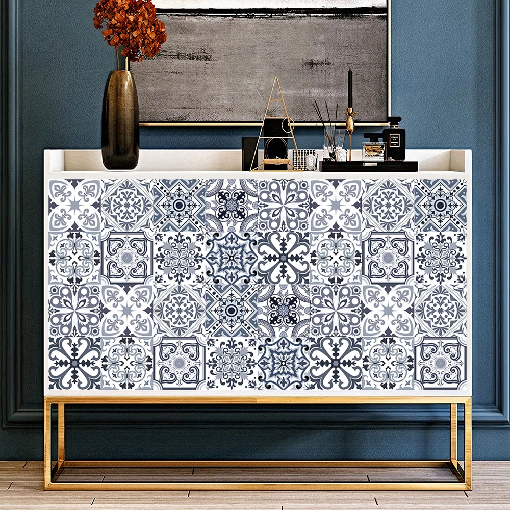 Серый и синий ретро узор матовая наклейка Водонепроницаемая Нескользящая плитка декоративная пленка для плитки/пол в кухне ванная комната ПВХ росписи