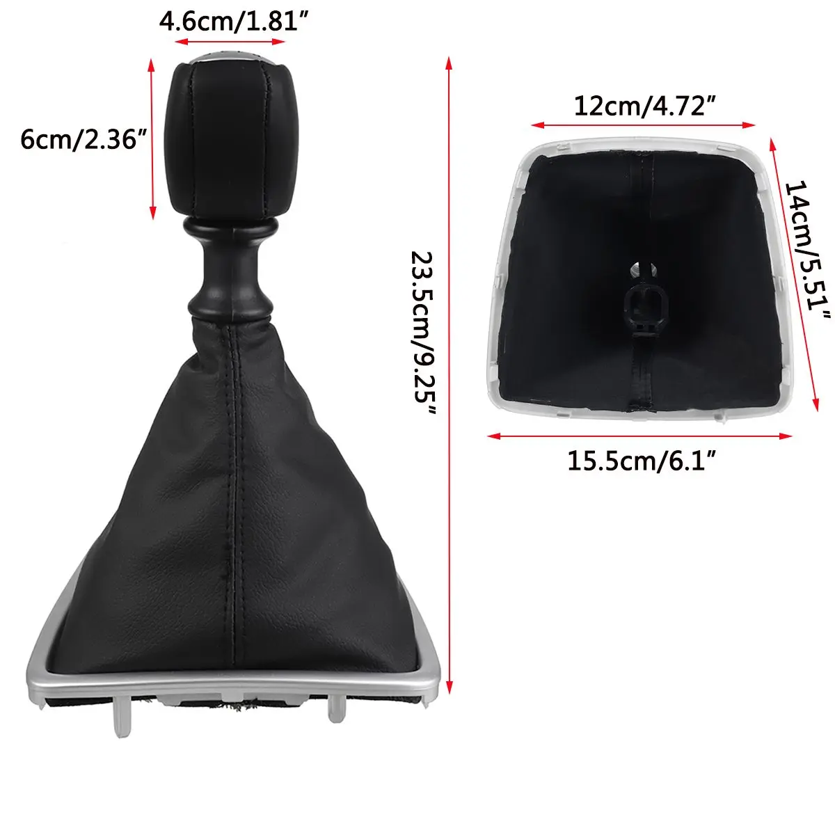 Спецификация:Название продукта: ручка переключения передач с ботинкой GaiterМатериал: из искусственной кожи и пластикаЦвет: черный и серебристыйОбщая высота: 23,5 см/9,25"Шестерни рукоятка рычага переключения передач Размеры: 4,6 см/1,81 "x 6 см/2,36" (Ш х В)Шестерня: 6 скоростей