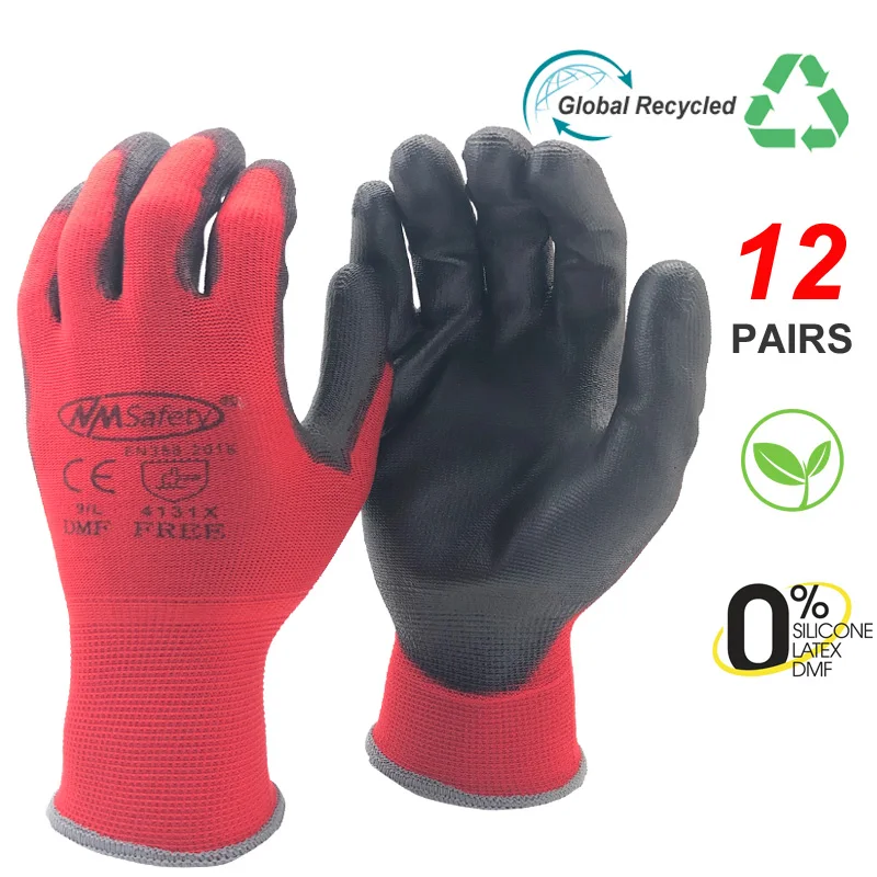 24 шт/12 пар трикотажные нейлоновые перчатки с покрытием из полиуретана и резины, рабочие перчатки для садоводства и промышленной безопасности.1. 13 калибровочных трикотажных перчаток из полиуретана с нейлоновым покрытием.2. Новый стандарт CE: 2016 EN388 4131X.3. Практичный выбор сада для пользователей, которые ищут большую ловкость и гибкость.4. 13 калибровочный нейлоновый трикотажный вкладыш обеспечивает отличную сенсорную чувствительность перчатки с покрытием из полиуретана.5. Упаковка: 12 пар/упак.