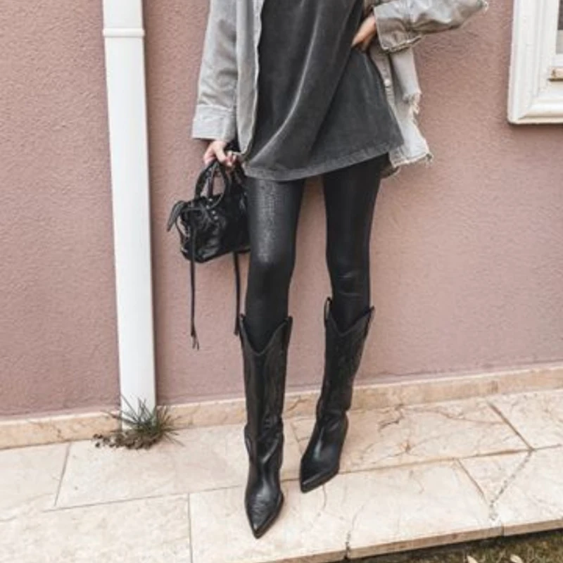 Ковбойские ботинки в западном стиле для женщин, женская обувь с острым носком, брендовая замшевая кожаная обувь с тиснением, до середины икры, объемная искусственная кожа