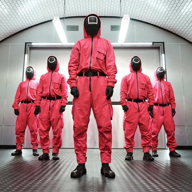 Красный комбинезон с маской для игры в кальмары, маскарадный костюм солдат, Босс, Детский костюм для взрослых, Круглый, шесть масок, Haloween, праздничный костюм, детский подарок