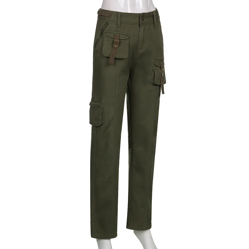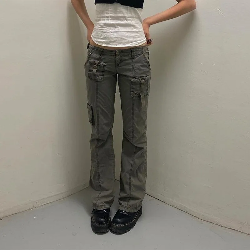 Джинсы-карго женские прямые в ретро стиле, с заниженной талией