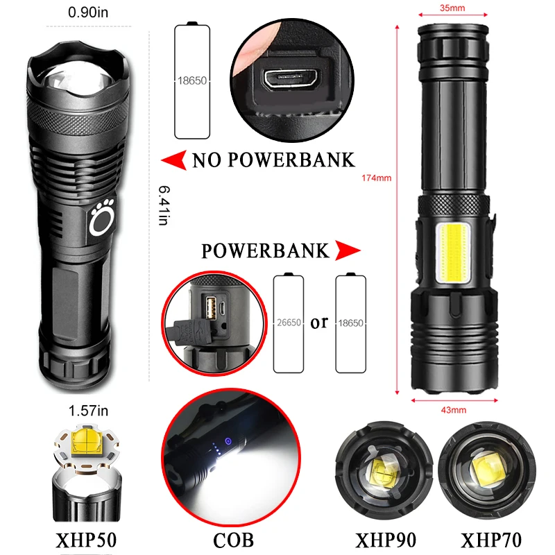 Яркий светодиодный фонарик 26650 лм, супер мощный XHP70, мощсветильник фонарик XHP50, высокомощный перезаряжаемый от USB тактический светильник онарь, светодиодный фонарь