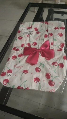 Милое платье. На ши-тцу весом 6 кг размер L подошёл в длину, в ширину немного широковато. Буду переносить липучку. Также, на талии перемычка узковата, хотелось бы пошире. А так, яркое и красивое летнее платье. Однозначно, стоит своей цены.