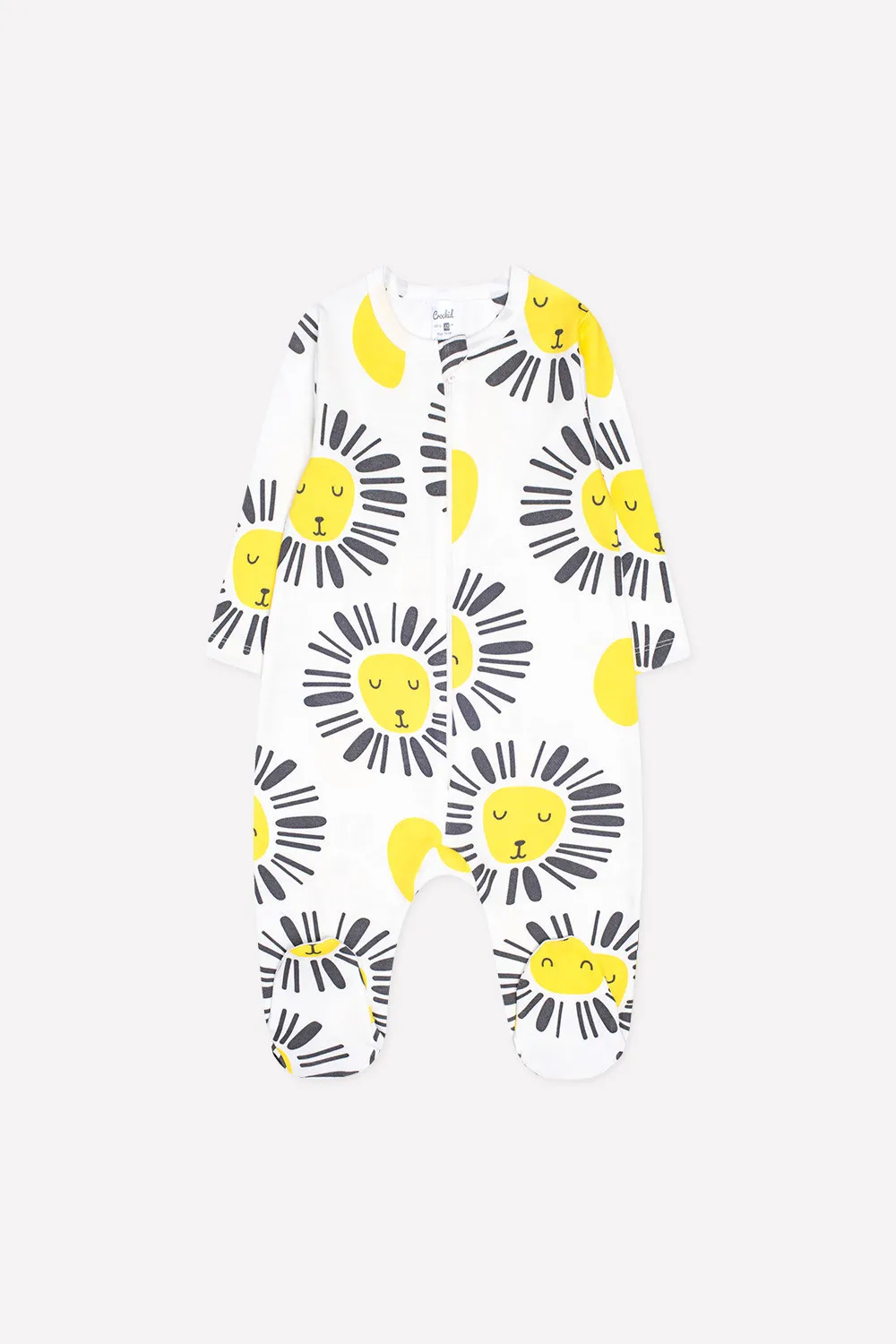 Описание: Комбинезон из хлопкового трикотажа интерлок с набивным рисунком. Застежка на молнию с защитой для шеи. Длинные рукава. Ластовица.