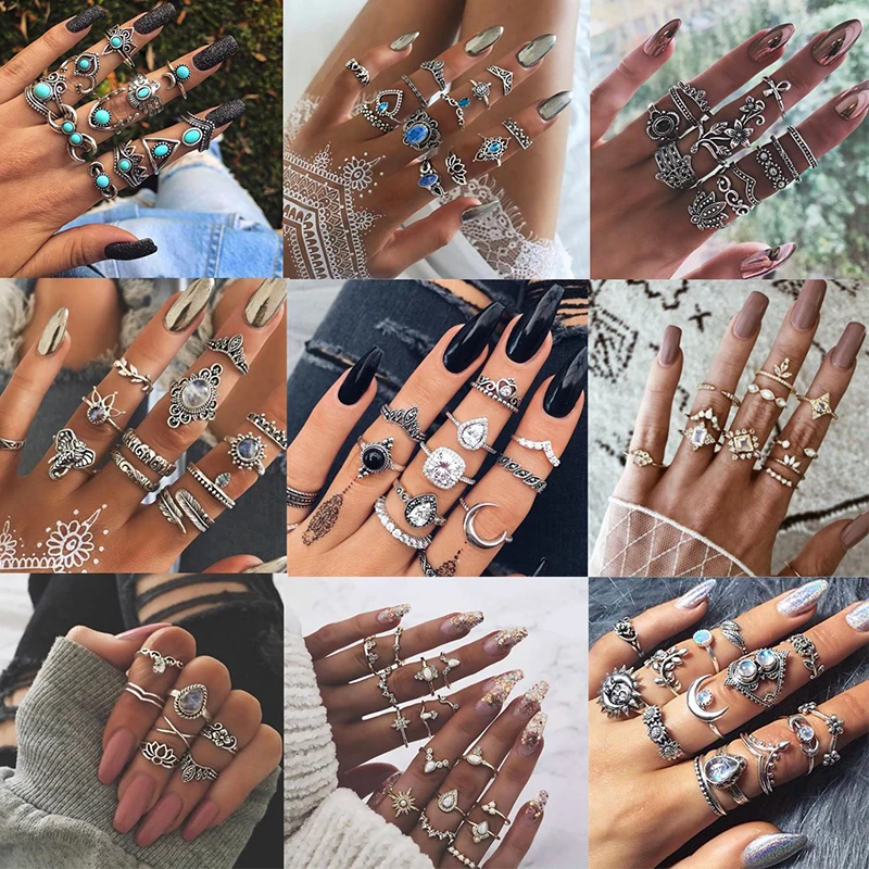 Набор Колец YADELAI в богемском стиле, кольцо средней длины для пальцев под античное золото, слон, сердце, корона, цветок, роза, резные кольца, ювелирные изделия для женщин