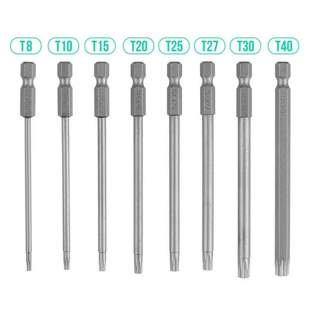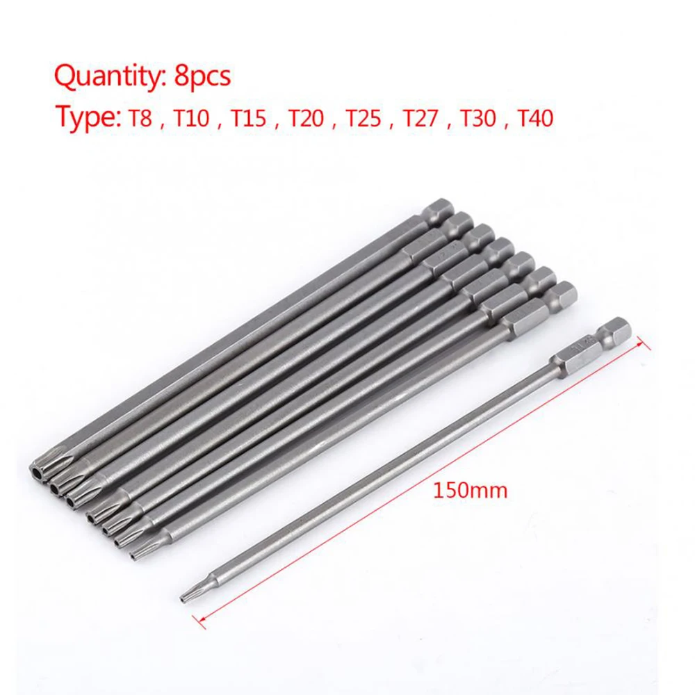 8 шт.компл. 150 мм 14 "магнитный шестигранный хвостовик T8 T40 длинный стальной Torx Security набор наконечников для электрической отвертки