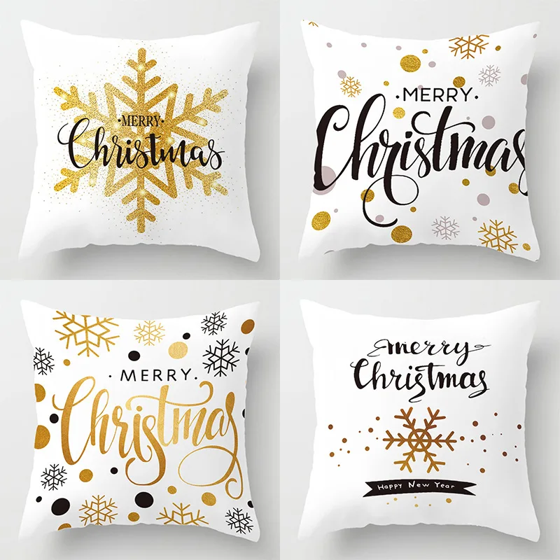 Рождественская наволочка для подушки белого и золотого цвета, Рождественская наволочка для подушки, снежинка, алфавит для дома, стула, дивана, декоративная наволочка, наволочки