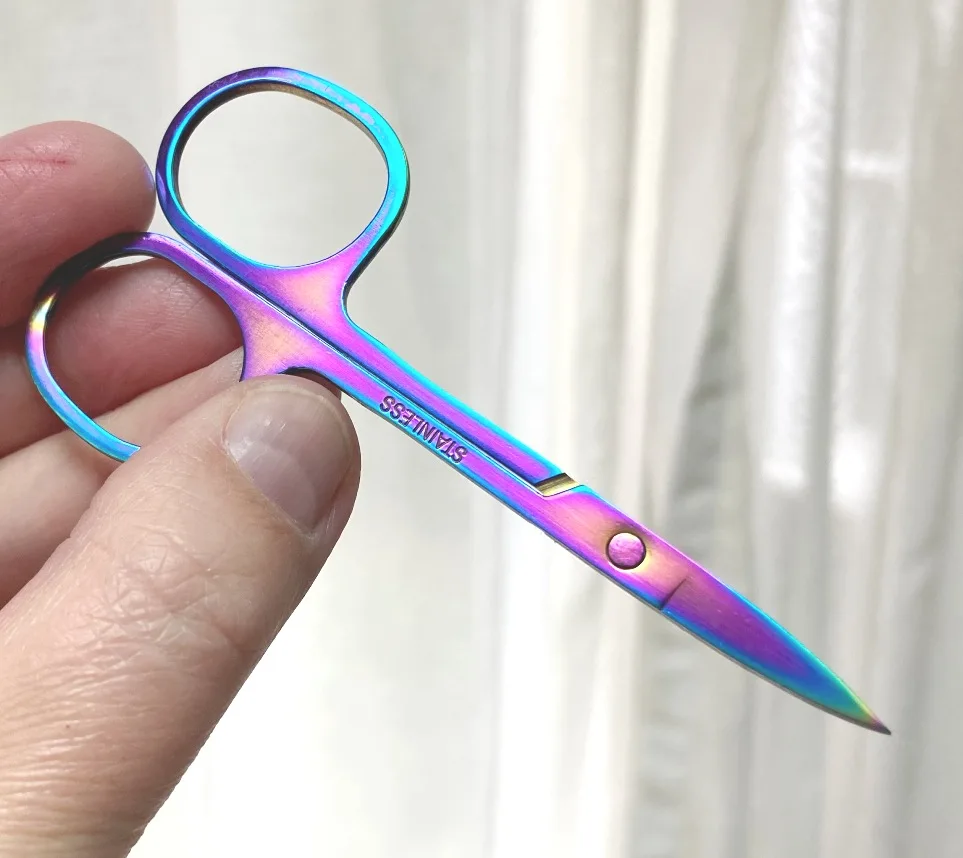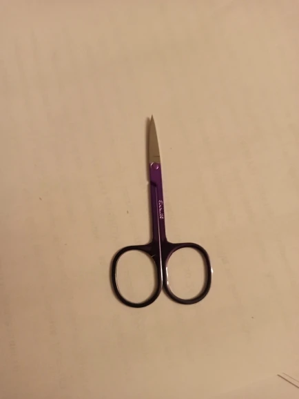 на ножницах есть заметная царапина на темном цвете, стригут, вроде стригут, но хлипкие, что-то твердое стричь ими нельзя, картон например, можно бумагу, не толстую, не много листов за раз, 3-4 листа тетрадных или 1-2 альбомных, тогда не сломаются и возможно прослужат, но если картон или что-то твердое, скорее всего сломаются и не прослужат вообще нисколько, были наподобие ножницы, но в другом цвете, покупала рублей за 40, сломались после того как пыталась обстричь веточку на комнатном растении, прямо сразу развалились, когда ощутилось давление на них, эти ножницы похожие и они скорее для бумаги или чего-то не твёрже бумаги. Пробовала ими стричь кутикулу, для кутикулы не подходят, неудобно пользоваться, слишком толстая режущая часть.
