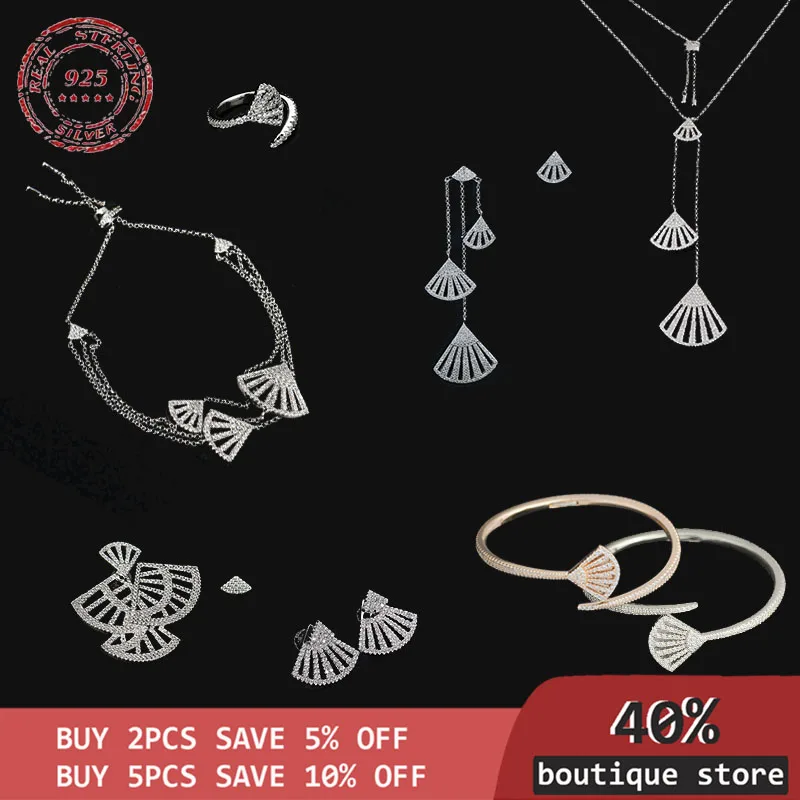 Модные веерообразные серьги из стерлингового серебра, Браслет, Ожерелье S925, серьги с бриллиантами, кольца, браслеты, набор из стерлингового серебра 925 пробы