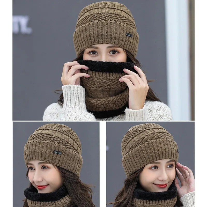 Зимняя облегающая шапка 2021, зимний теплый вязаный шарф на флисово...