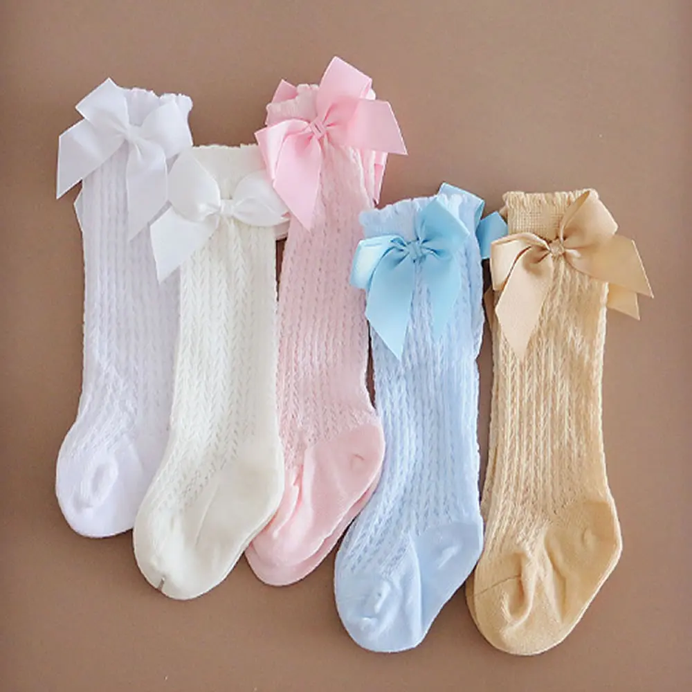 Детские носки из чистого хлопка, детские гольфы, носки для новорожденных, девочек, принцесс с бантом, женские детские носки