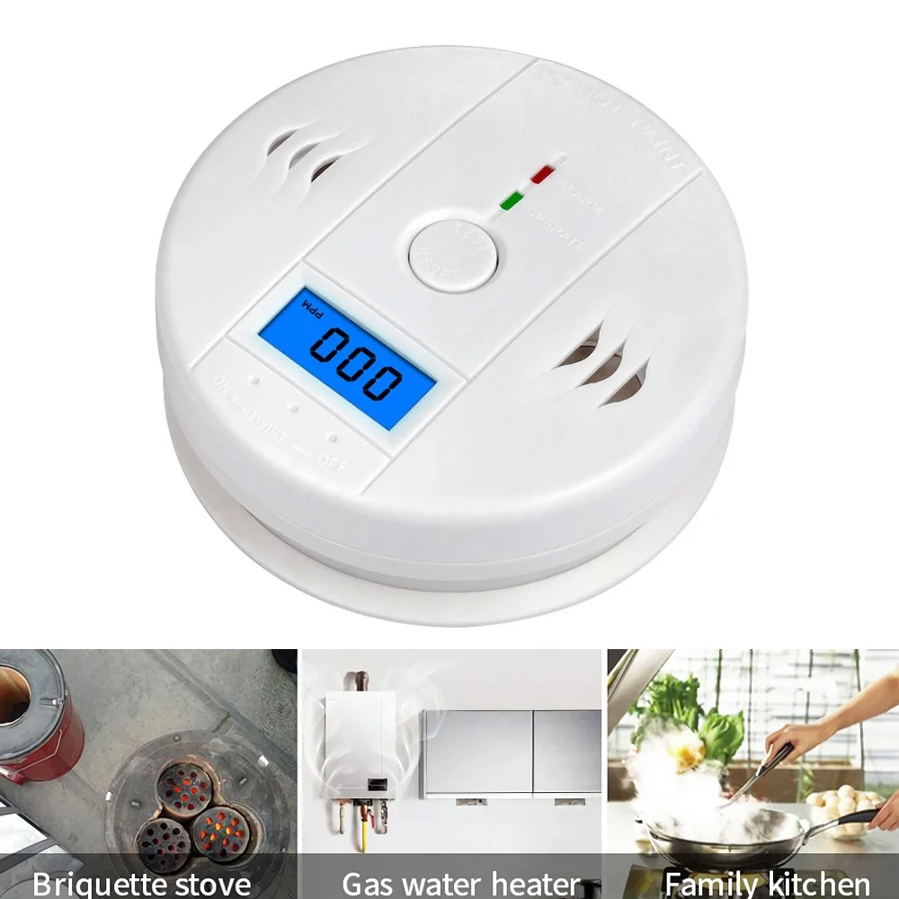 Датчик углекислого газа с ЖК-дисплеем, независимый детектор Предупреждение варийной сигнализации об отравлении угарным газом со встроенной сиреной 85 дБ