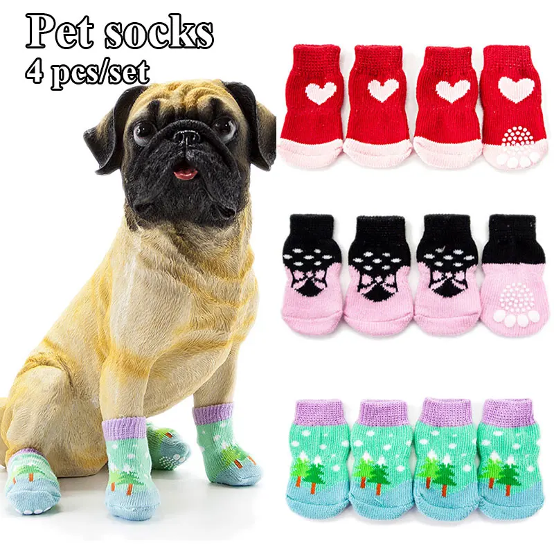 Зимние нескользящие носки для домашних животных 4 шт., теплые вязаные носки для маленьких кошек и собак, толстые Защитные носки для чихуахуа, носки для собак, аксессуары для пинетки