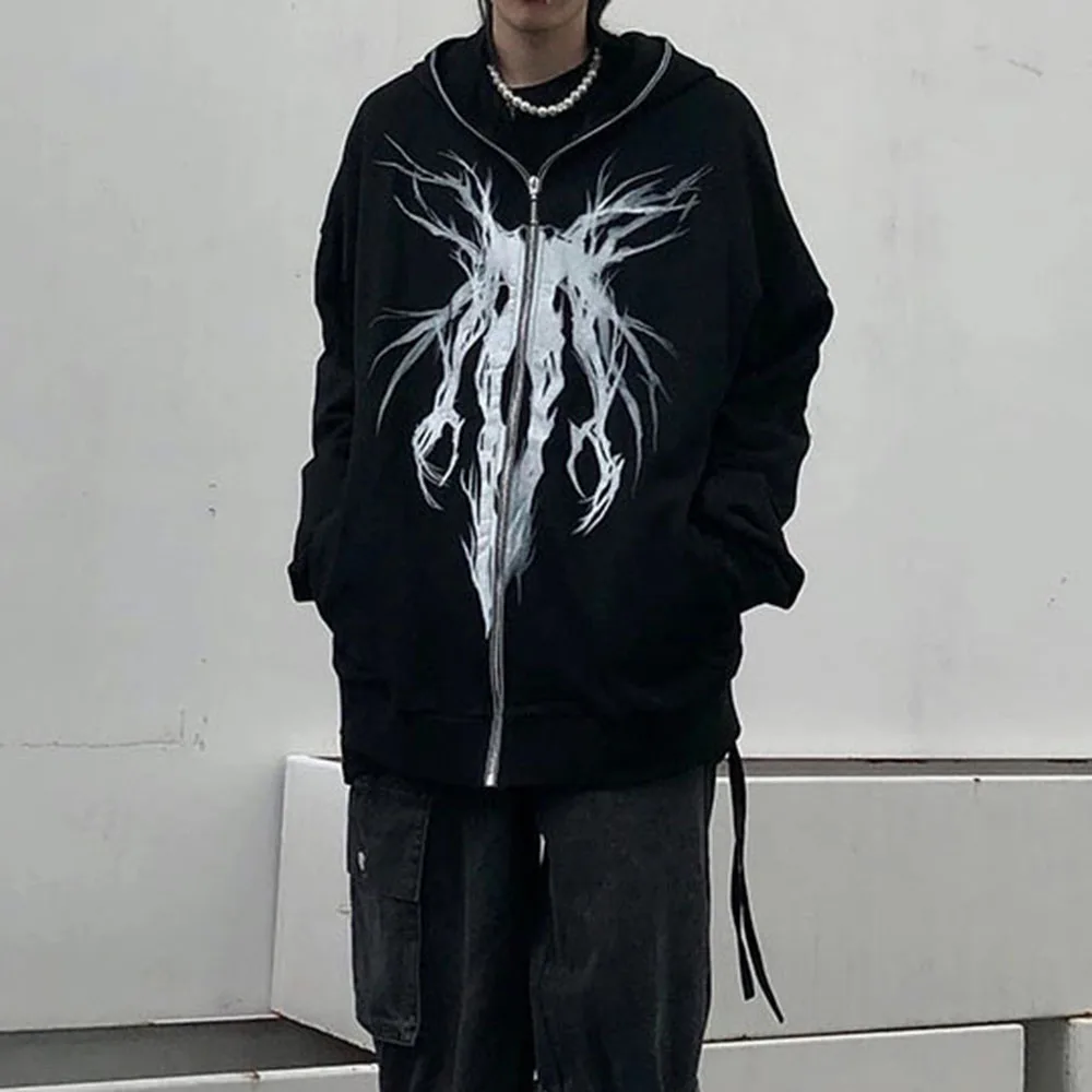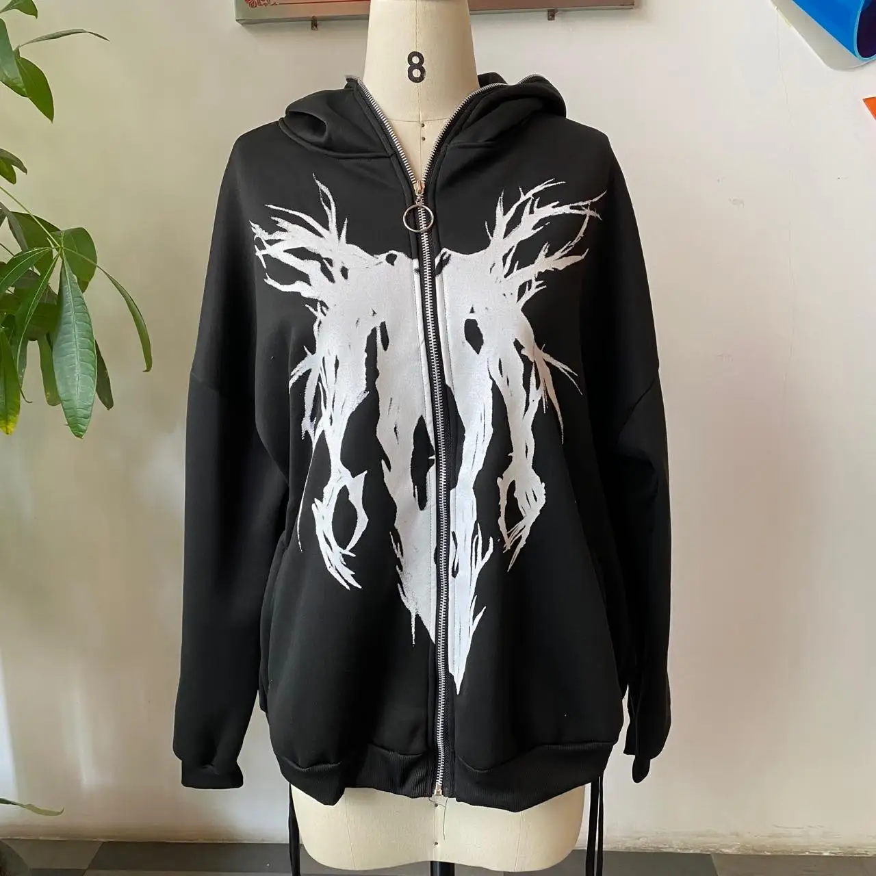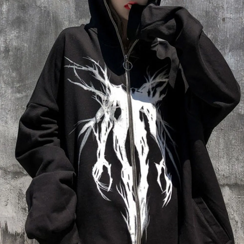 Rosetic Y2K Темный принт Готический худи Mujeres Хэллоуин повседневный черный Sudaderas con capucha Cremallera Goth Pareja Sudaderas con capucha 2021 Осенняя негабаритная Толстовка