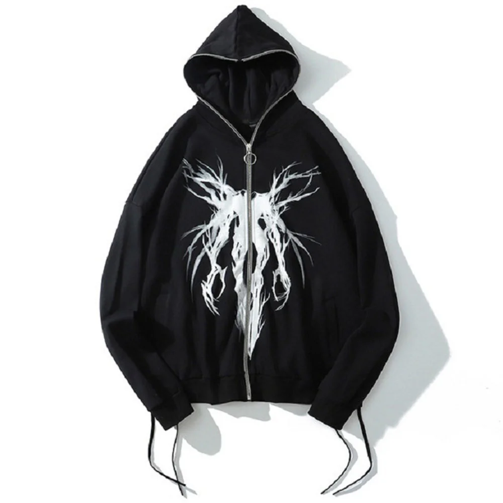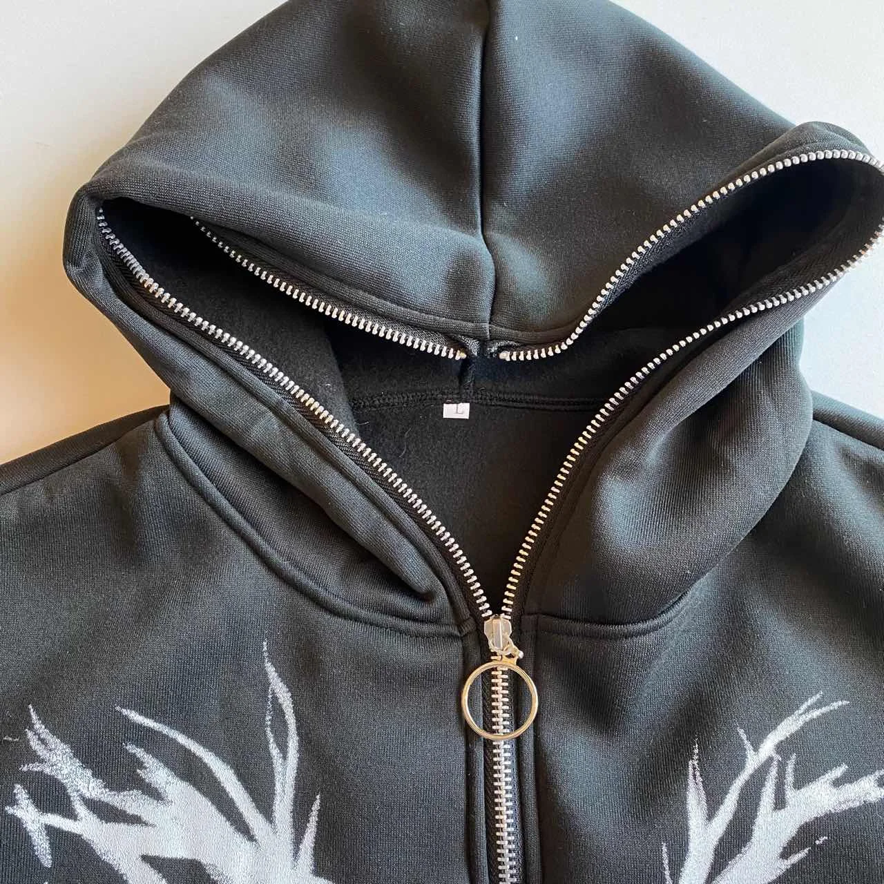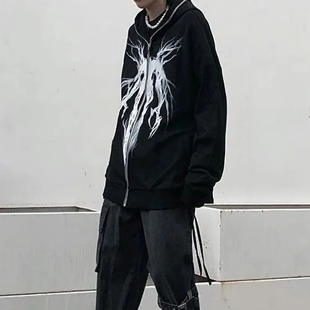 Rosetic Y2K Темный принт Готический худи Mujeres Хэллоуин повседневный черный Sudaderas con capucha Cremallera Goth Pareja Sudaderas con capucha 2021 Осенняя негабаритная Толстовка
