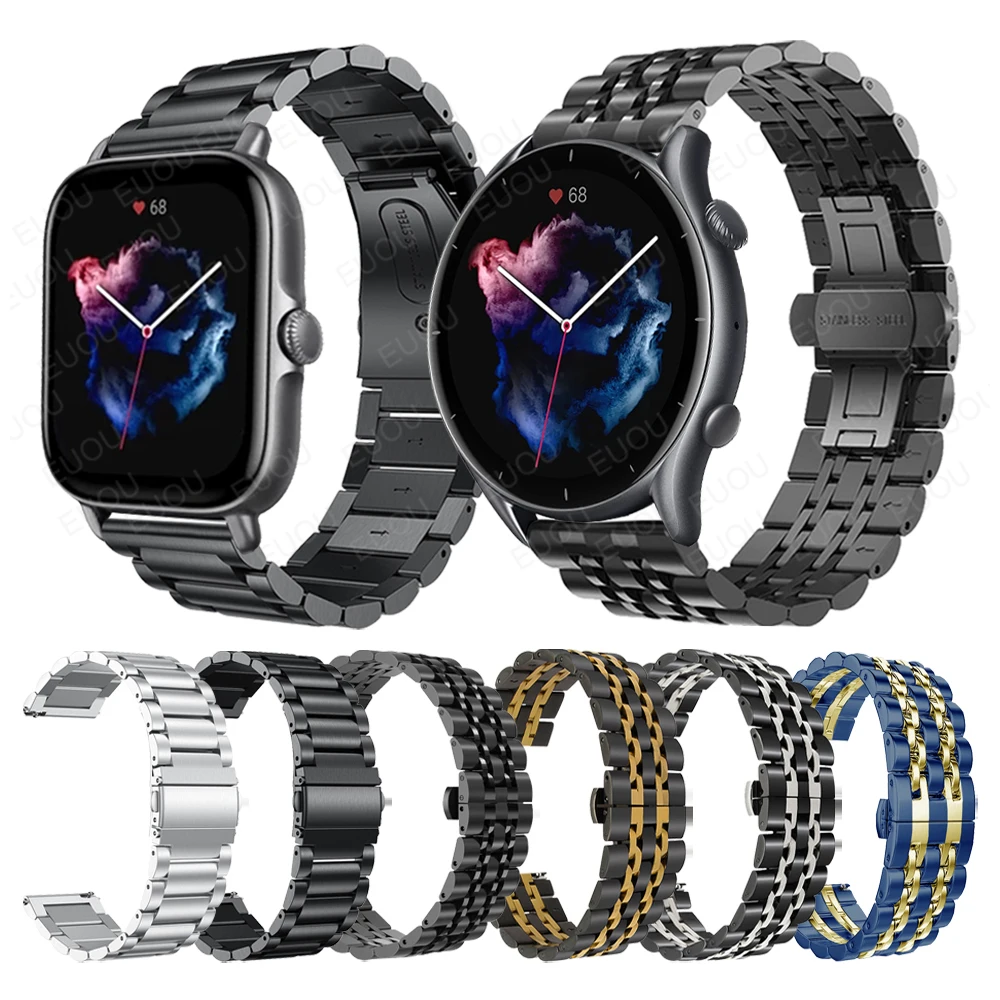 Ремешок из нержавеющей стали для Huami Amazfit GTR 3 Pro GTS 3, металлический браслет для смарт-часов GTR 2e Bip S U, аксессуары для часов