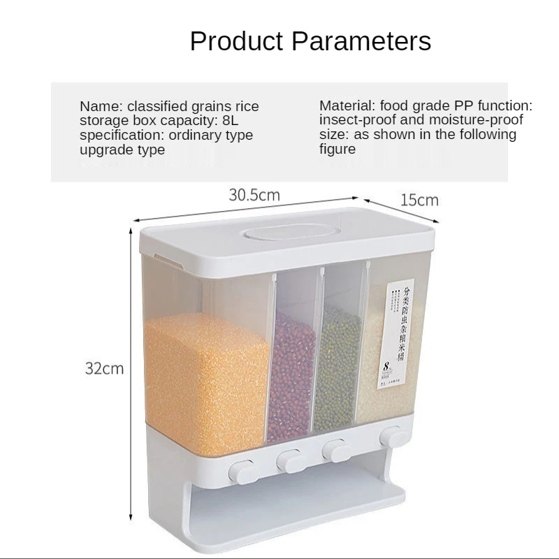Герметичный дозатор для хлопьев, влагостойкий Автоматический Дозатор для риса, настенный дозатор для сухой еды, сплиттер для риса, ведро, кухонные инструменты