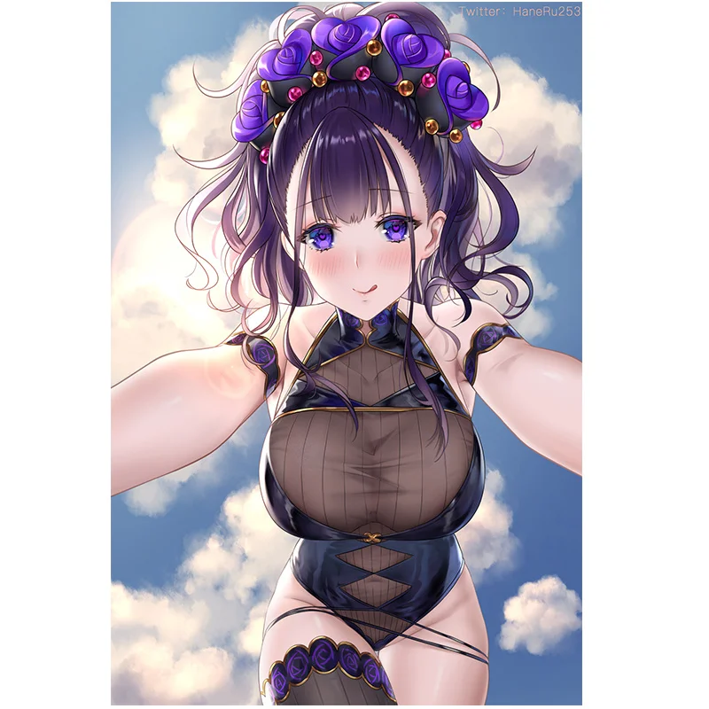 Холст с принтом аниме фиолетовая Роза гирлянда сексуальная девушка ...