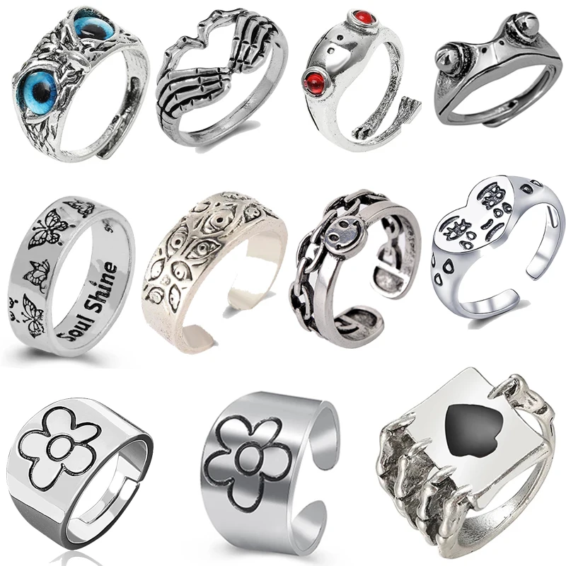 Креативное кольцо в виде совы, панк, демонический глаз, животное, регулируемые Открытые Кольца для женщин и мужчин, Винтажное кольцо для пар, Модная бижутерия, лучший подарок