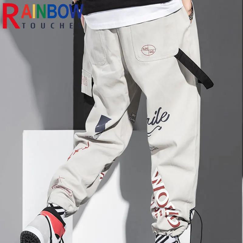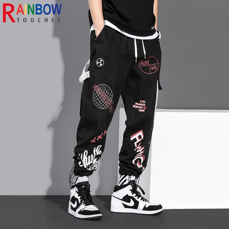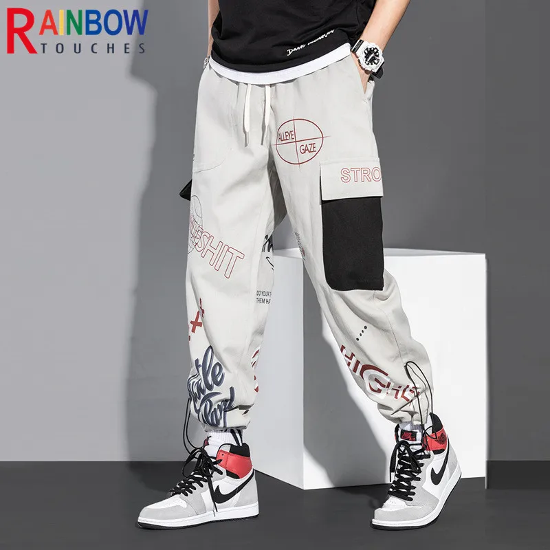 Новинка 2022, спортивные Свободные тренировочные брюки Rainbowtouches, мужские Модные Повседневные укороченные брюки-карго в стиле хип-хоп с граффити и принтом