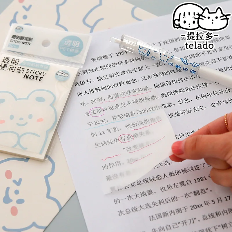 Прозрачный блокнот для записей, 50 листов, пластиковые водонепроницаемые Стикеры для заметок для учеников, офисные аксессуары