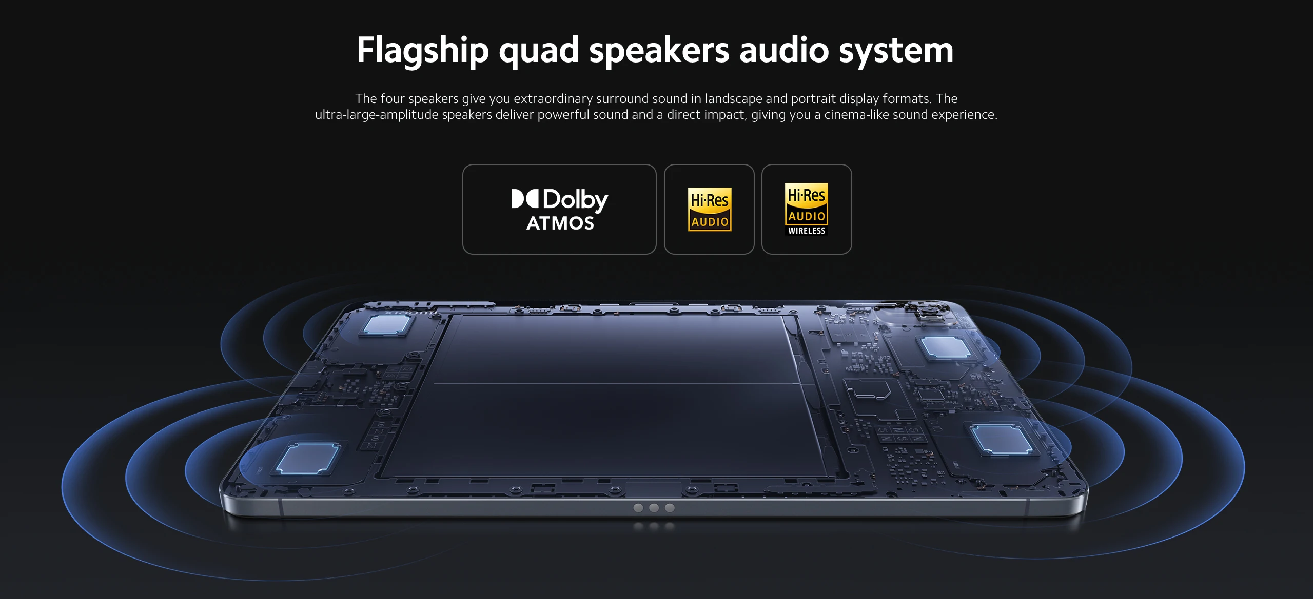 Четыре динамика дают вам необыкновенный объемный звук в форматах ландшафтного и портретного дисплея.