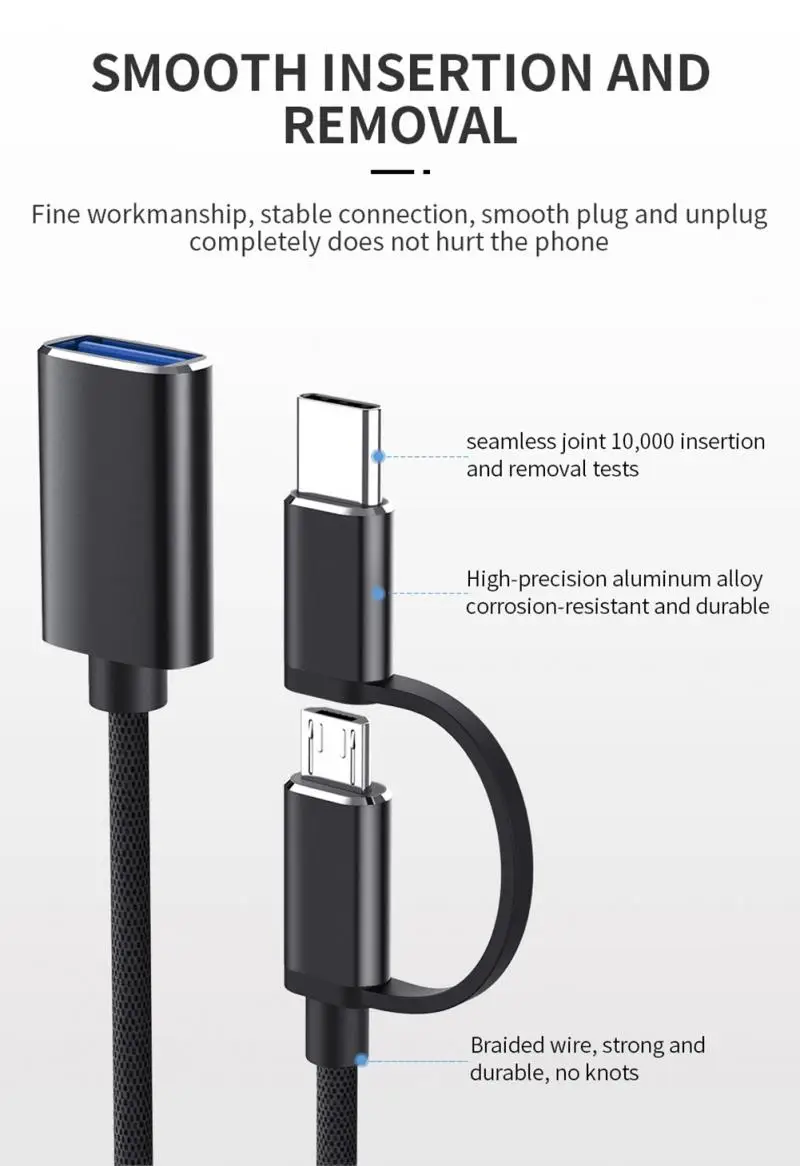 2021 Новый 2 в 1 USB 3,0 OTG адаптер кабель Type-C Micro USB к USB ...