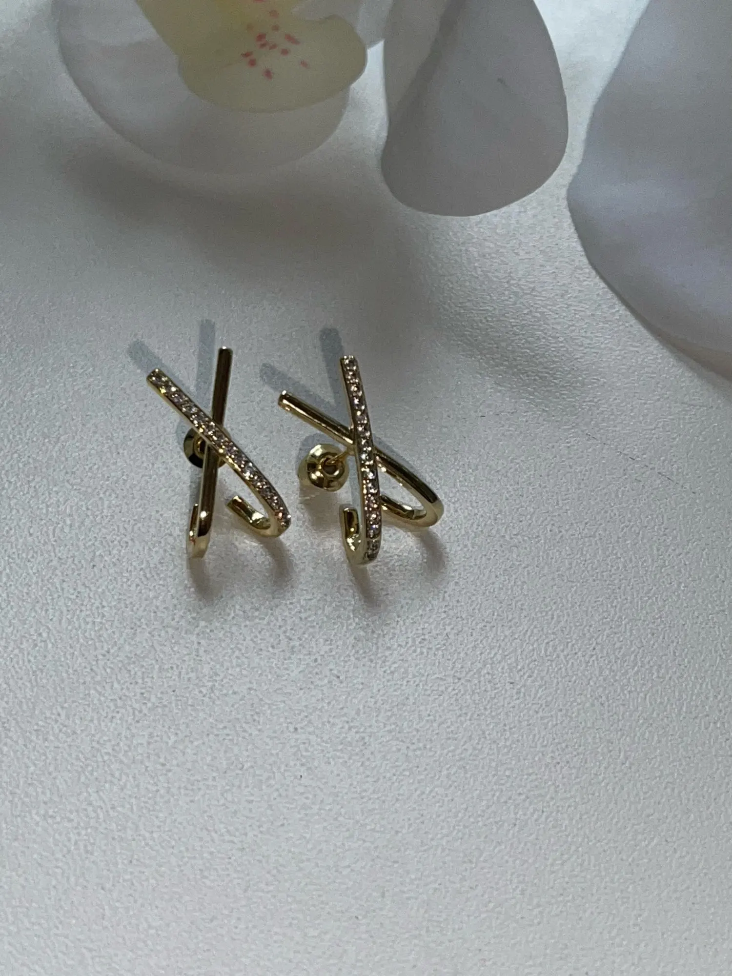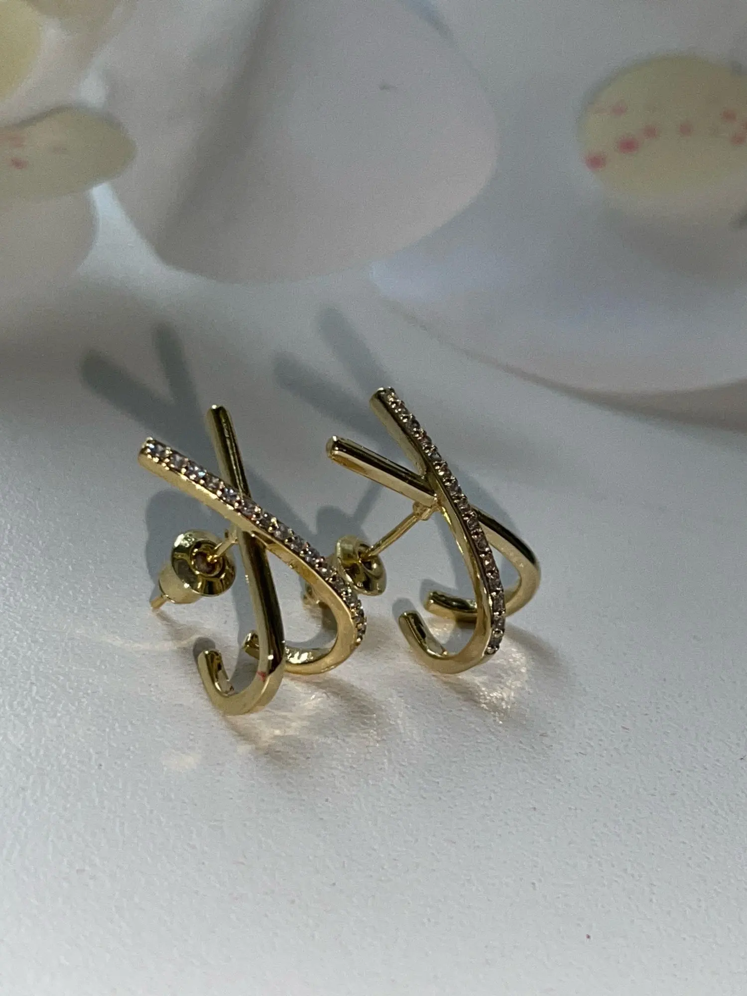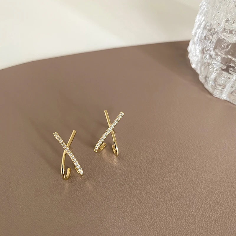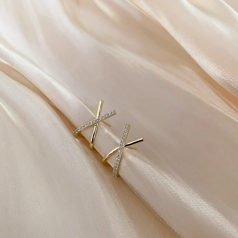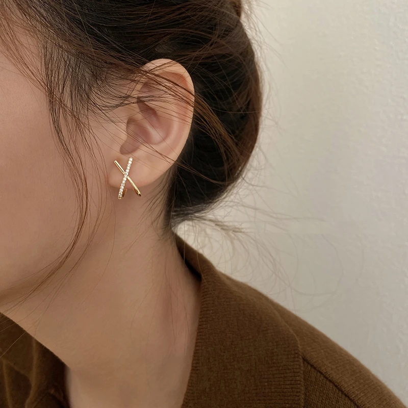 Женские золотые серьги X-образной формы, новые дизайнерские металлические серьги с цирконом, элегантные аксессуары в Корейском стиле, модные украшения для вечеринок, 2021
